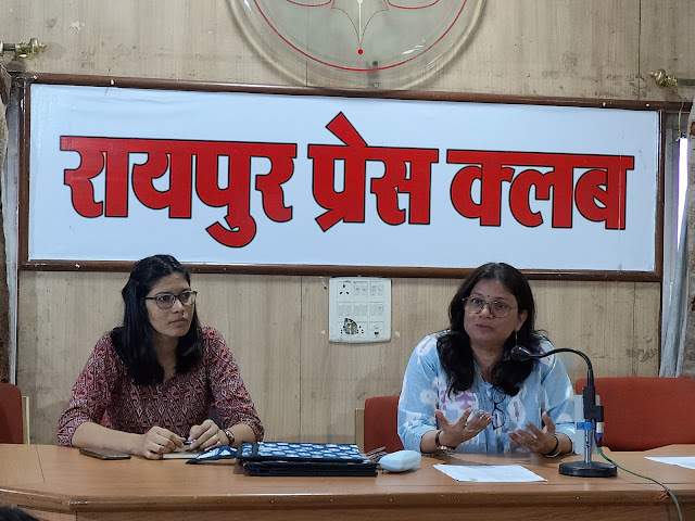 रायपुर- चैतन्य वॉइस संस्था की डायरेक्टर कल्पना पंत ने रायपुर प्रेस क्लब में प्रेस कॉन्फ्रेंस किया। कॉन्फ्रेंस में उन्होंने बताया कि पिछले 5 सालों से छत्तीसगढ़ में बिहान कार्यक्रम के साथ में मिलकर घरेलू प्रश्नों को मिलकर सुलझाने का प्रयास कर रहे हैं इसको एड्रेस करने के लिए महिलाओं को प्रशिक्षण भी दे रहे हैं। महिलाओं के अधिकारों की जागरूकता लाना अलग-अलग विचारधारा को लेकर परिवार के साथ कैसे चलना चाहिए। महिला अपने अधिकारों के लिए कैसे लड़ सकती है। इन सब बातों को बताने एवं सुलझाने का प्रयास कर रहे है।